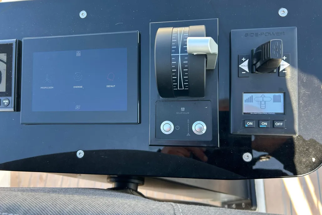 Ce Dufour 470 Smart Electric bénéficie d’un niveau d’équipement particulièrement complet. Le bateau est notamment équipé d’un propulseur d’étrave Sleipner, qui facilite les manœuvres de port.