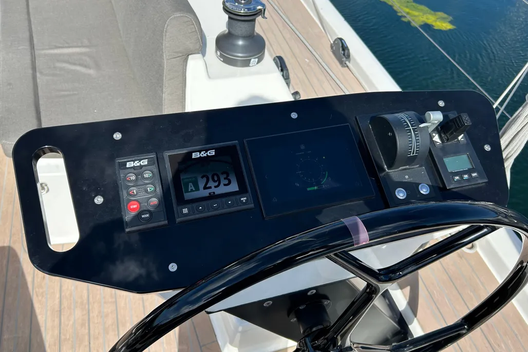 La conduite du bateau repose sur une électronique B&G complète, parfaitement adaptée à la navigation côtière comme hauturière.