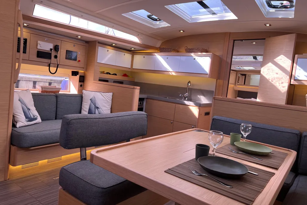 Les manœuvres sont facilitées grâce aux quatre winchs de cockpit, dont deux winchs électriques pour les drisses sur le roof. Cette configuration rend la navigation simple, même avec un équipage réduit.